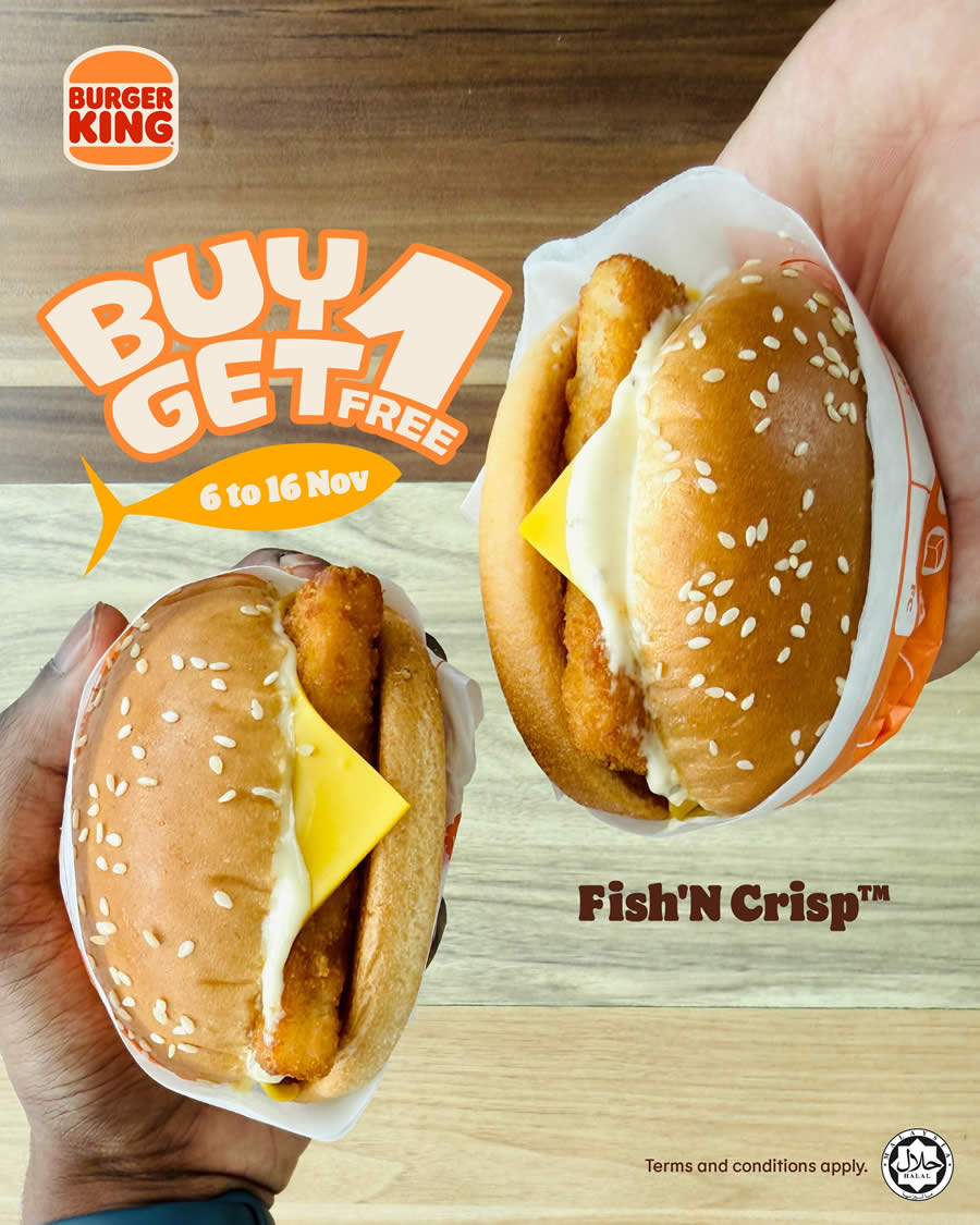 Don’t miss out on this delicious limited-time offer from Burger King Malaysia! Whether you’re on a lunch break, dinner run, or catching up with friends, the Buy 1 Free 1 Fish’N Crisp promo from 6-16 November 2025 is the best way to double your satisfaction for half the price.