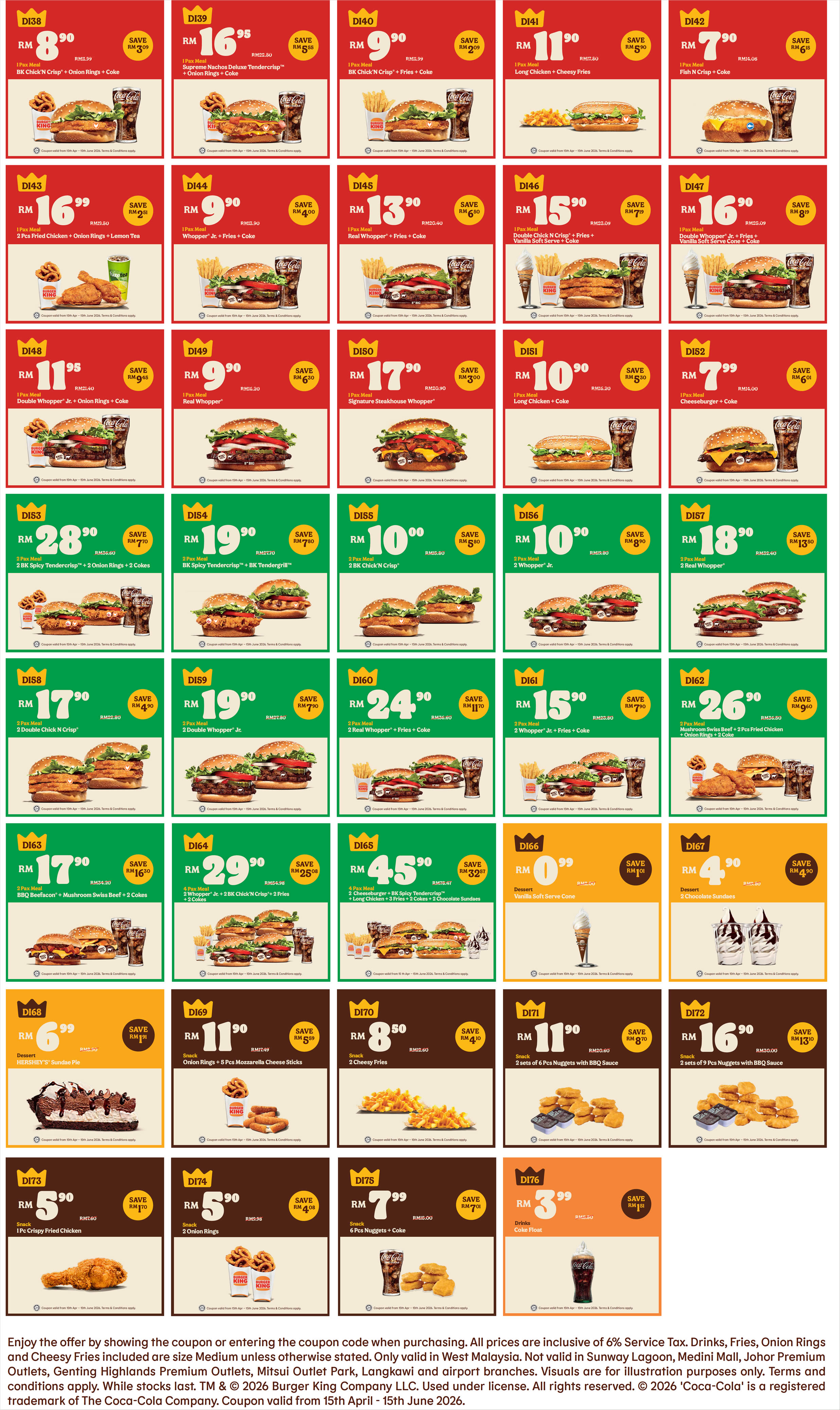 - DI44 – Whopper Jr. + Fries + Coke: RM9.90 (Usual price RM13.90, save RM4.00)