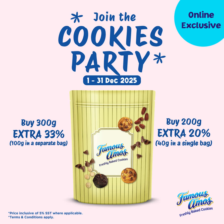 This December, treat yourself or your loved ones to extra deliciousness with the Famous Amos Cookies Party promotion. With bonus portions and online convenience, it’s the perfect chance to stock up on your favourite crunchy delights before the festive season ends. Don’t miss out – the celebration runs only until 31 December 2025! 🍪✨