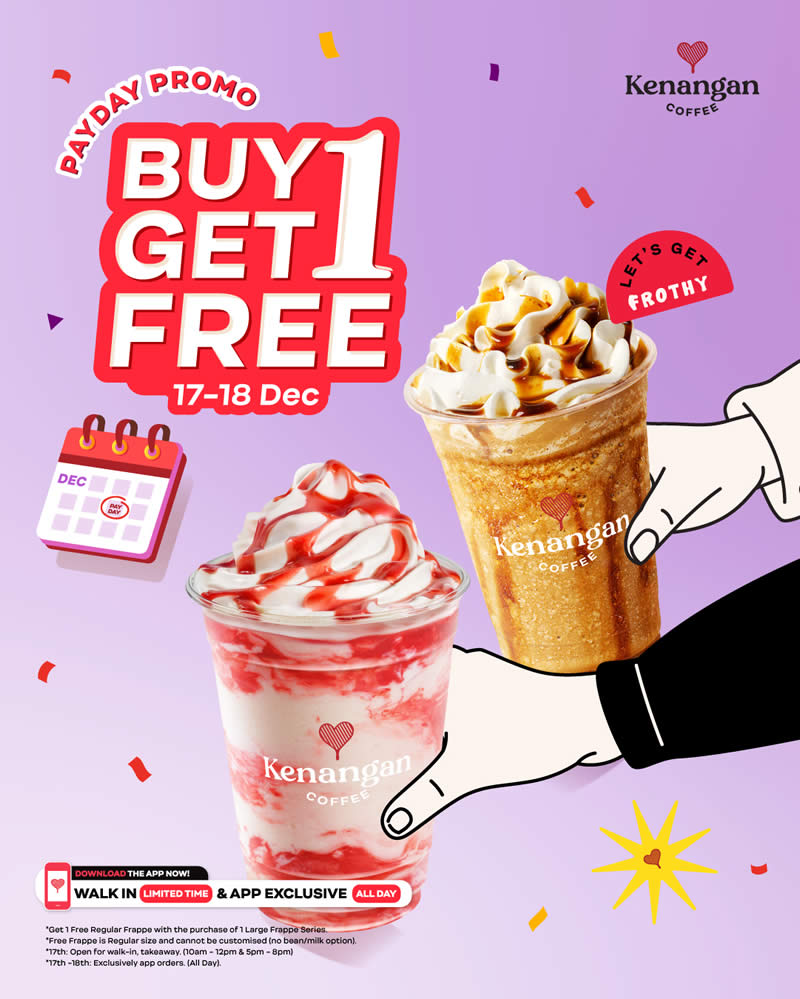 Kenangan Coffee Malaysia is turning payday into a celebration with a refreshing Buy 1 Get 1 FREE Frappe promotion that is perfect for coffee and dessert lovers alike.