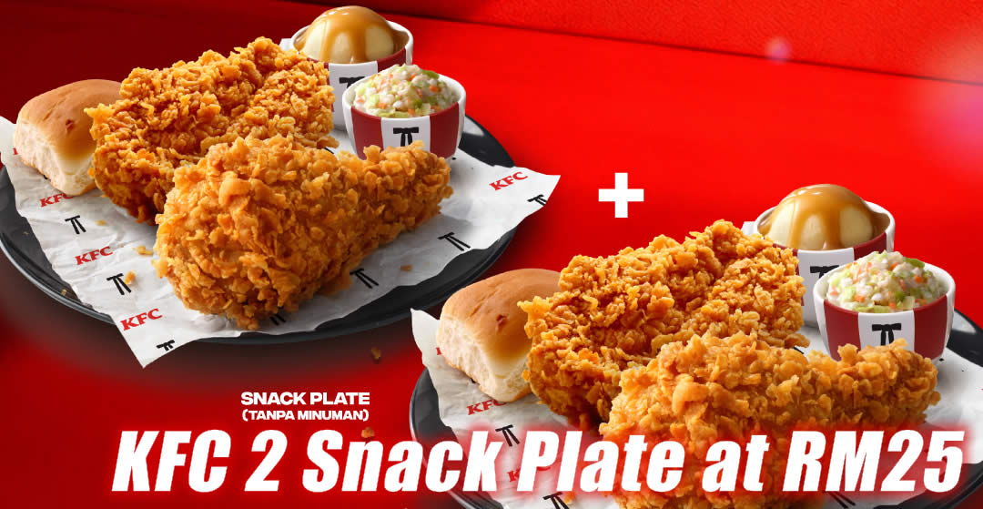 KFC Malaysia is running a limited-time value deal that lets customers enjoy two (2) Snack Plates for RM25 for a short promo window.
