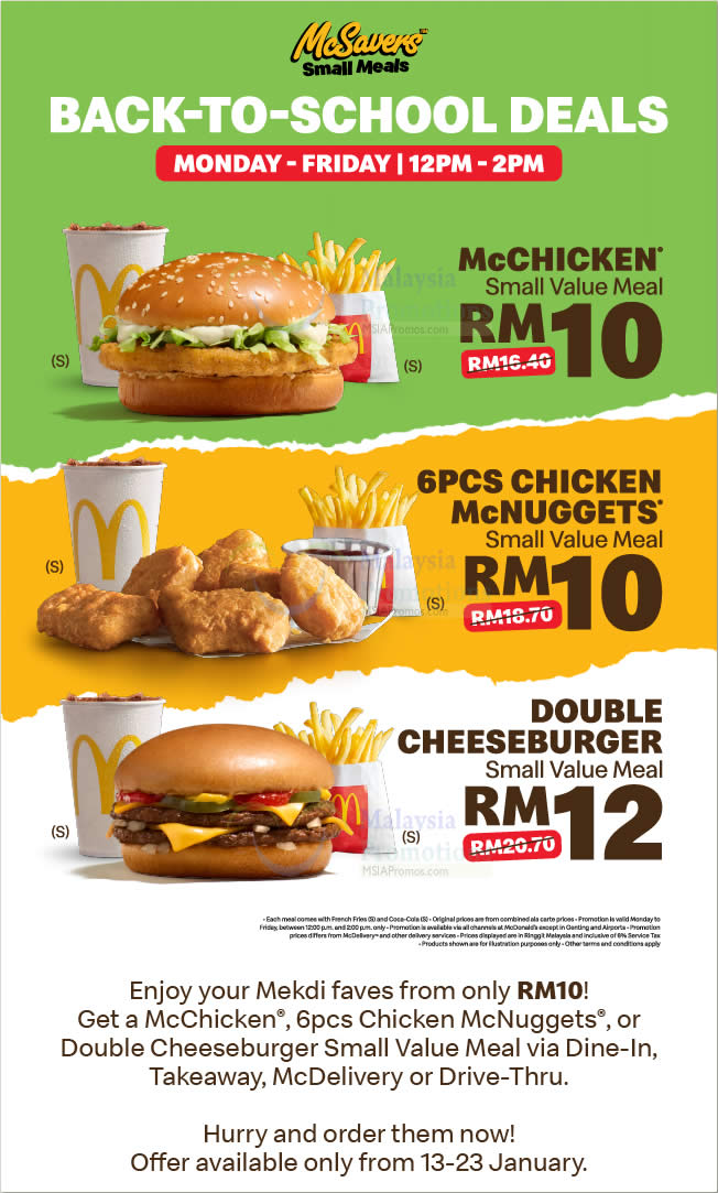 Under the popular McSavers Small Meals range, customers can enjoy selected favourites at special prices during lunchtime hours, making it ideal for school breaks or office lunch runs.