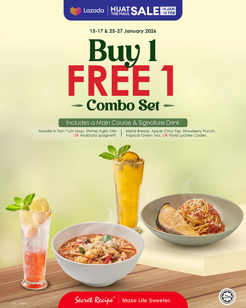 The 15 – 17 January 2026 Secret Recipe Lazada promotion is a timely excuse to dine out, catch up and enjoy more for less. With Buy 1 Free 1 sets, refreshing signature drinks and an affordable cake bundle, it is a well-rounded deal for both savoury and sweet lovers. For folks who enjoy sharing meals and stretching their ringgit further, this short promotion window is one not to miss.
