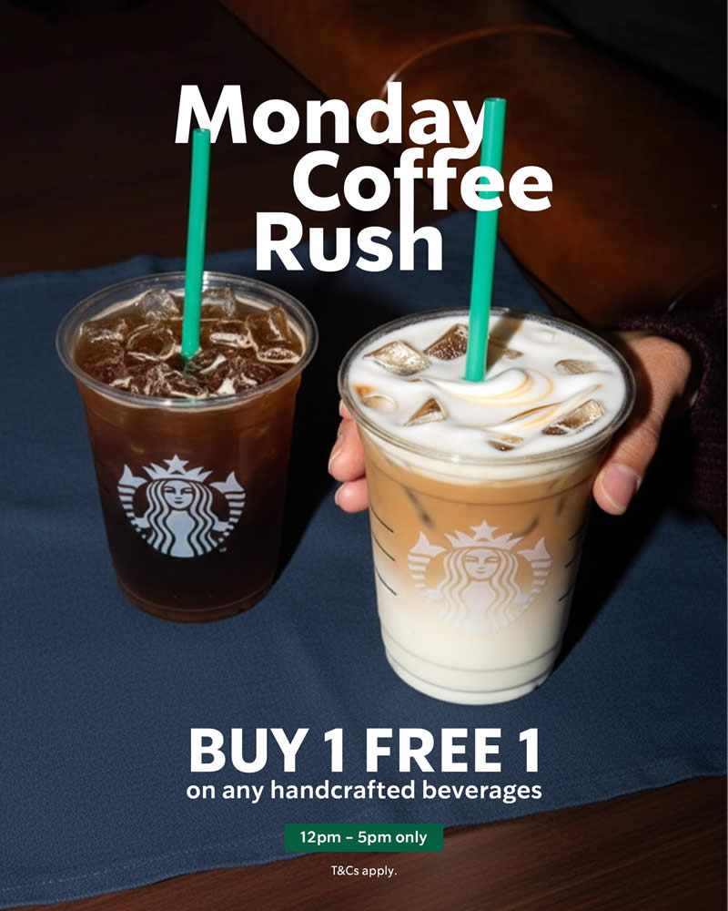Starbucks Malaysia is making Mondays more rewarding with a Buy 1 Free 1 promotion on all handcrafted beverages. This limited-time offer is available every Monday until 26 Jan 2026, from 12pm-5pm, giving coffee fans a perfect midday pick-me-up.