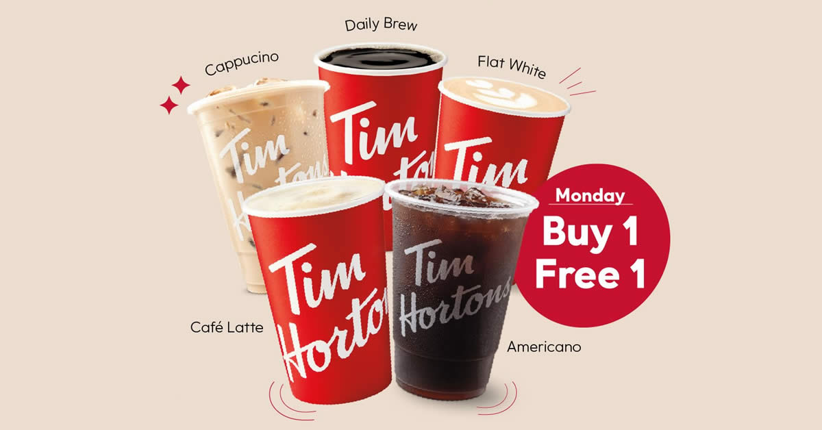 The Buy 1 Free 1 offer is promoted as a Monday deal under Tim Hortons Malaysia’s Weekday Deals theme. As promo mechanics can change, customers are encouraged to check the latest updates via Tim Hortons Malaysia’s official channels and store staff before ordering.