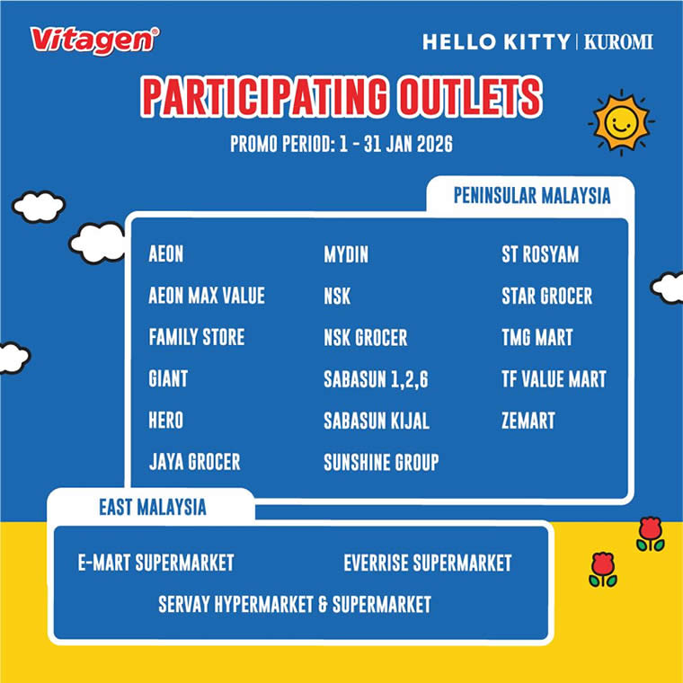 If you are already stocking up on Vitagen, this promotion makes it even more rewarding. With adorable Hello Kitty and Kuromi XL tote bags up for grabs, it’s the perfect time to enjoy your favourite cultured milk while adding a stylish and functional freebie to your collection. Head to participating outlets or shop online before the promotion ends on 31 January 2026.