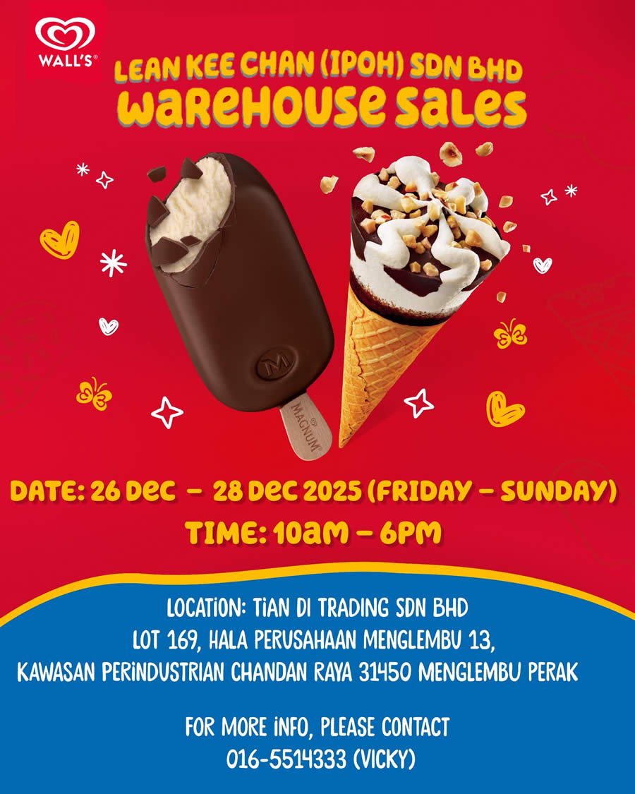 If ice cream is part of your festive tradition, this Wall’s Ice Cream Warehouse Sale in Ipoh is worth the visit. With a clear schedule, accessible location and trusted brand favourites, it’s a sweet stop to end the year on a high note.