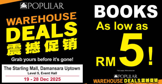 Stock up for less at POPULAR Warehouse Deals with books from RM5 [ Read more at MSIAPROMOS.COM ] ]]>
