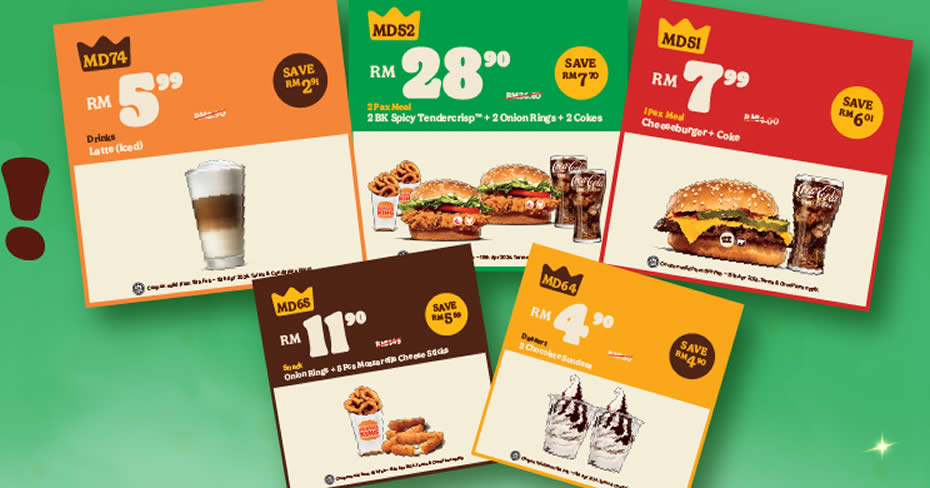 Over 35 Burger King e-coupons with meals from RM0.99