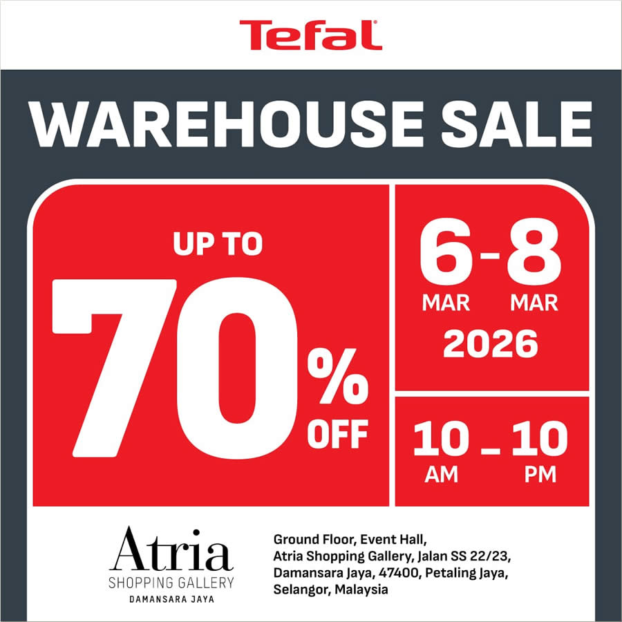Tefal Warehouse Sale is landing at Atria Shopping Gallery with discounts up to 70% OFF on selected items 😍🍳